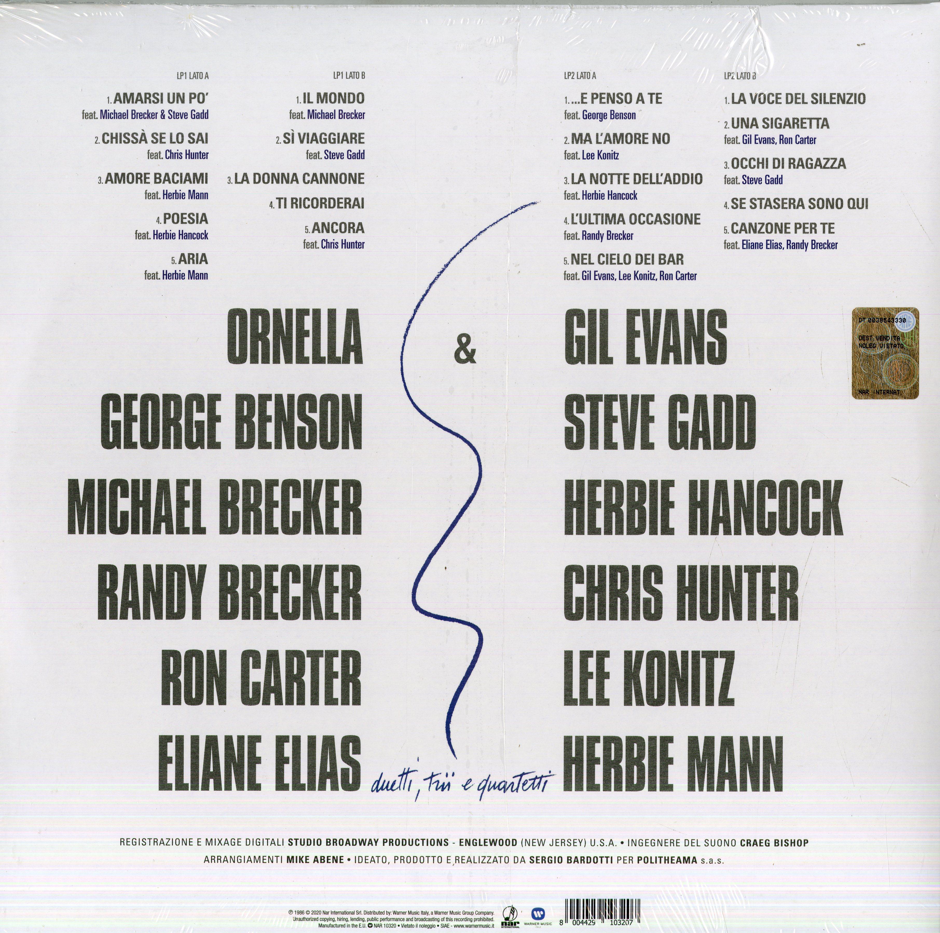 1 -Il mondo (feat. Michael Brecker) 2 -Si viaggiare (feat. Steve Gadd) 3 -La donna cannone 4 -Ti ricorderai Ancora (feat. Chris Hunter) Disco 2 - SIDE A ... E penso a te (feat. George Benson) 1 -Ma l'amore no (feat. Lee Konitz) 2 -La notte dell'addio (feat. Herbie Hancock) 3 -L'ultima occasione (feat. Randy Brecker) 4 -Nel cielo dei bar (feat. Gil Evans, Lee Konitz e Ron Carter)